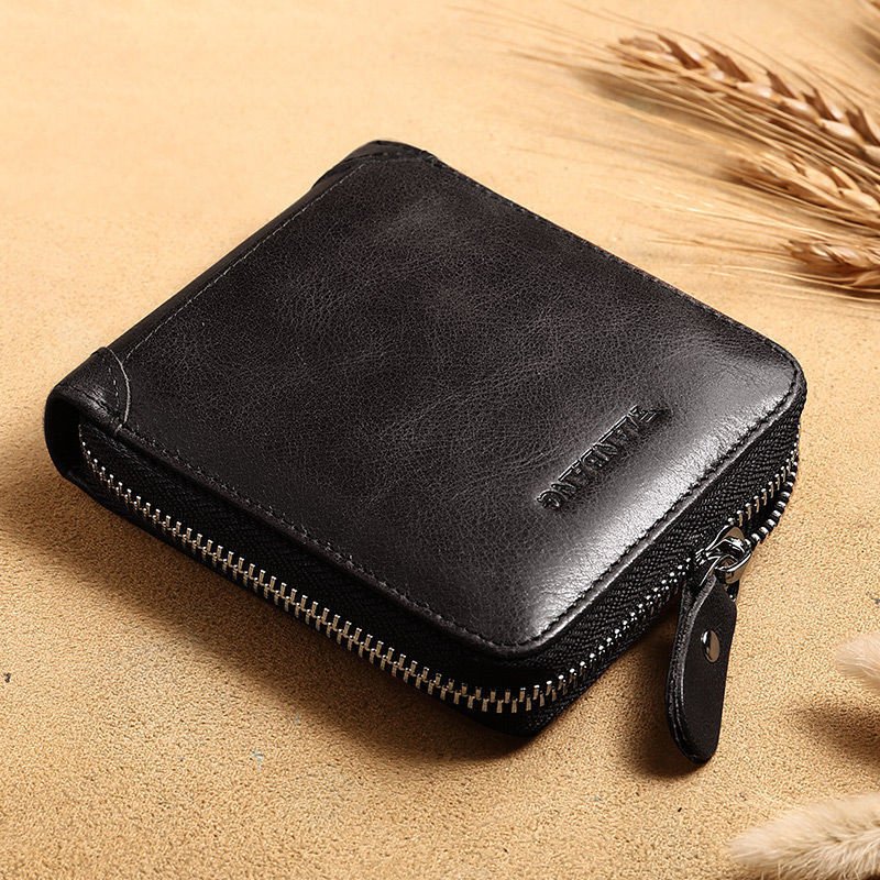 Manbang Full Zipper Top Layer Cowhide Wallet Men’s Leather Short